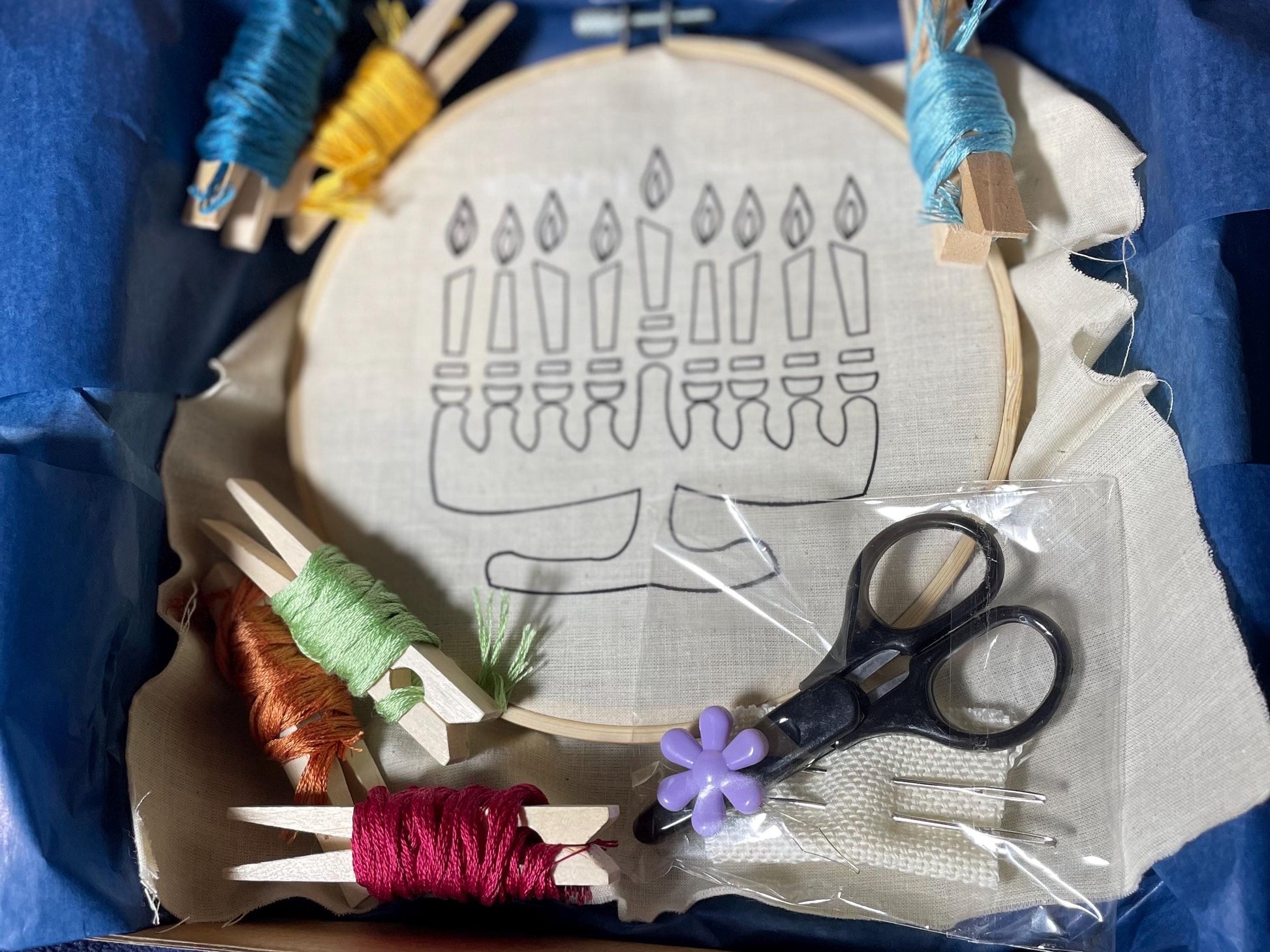 Menorah Embroidery Kit – Beginner Hanukkah DIY Craft